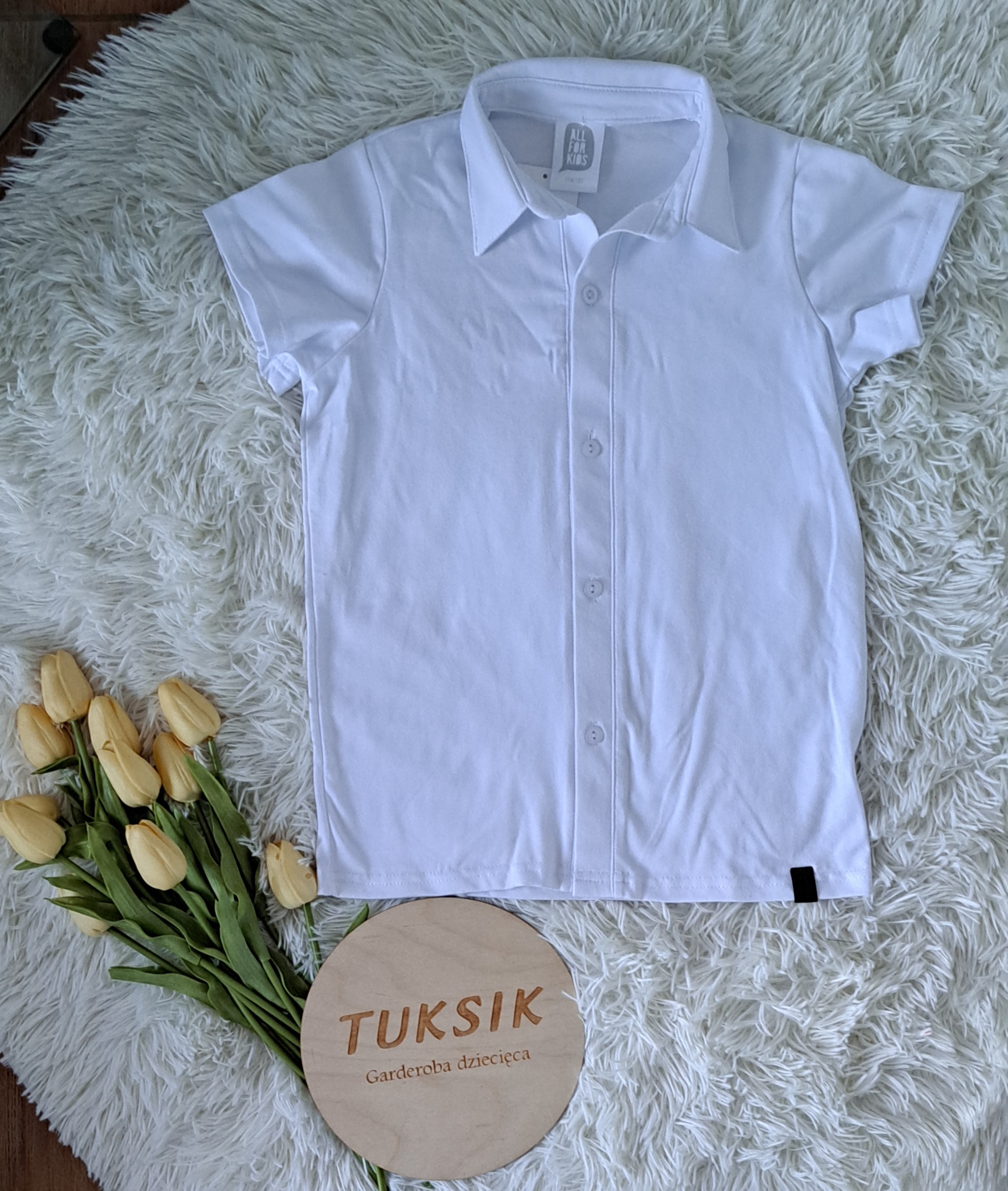 Biała, bawełniana koszula z krótkim rękawem.