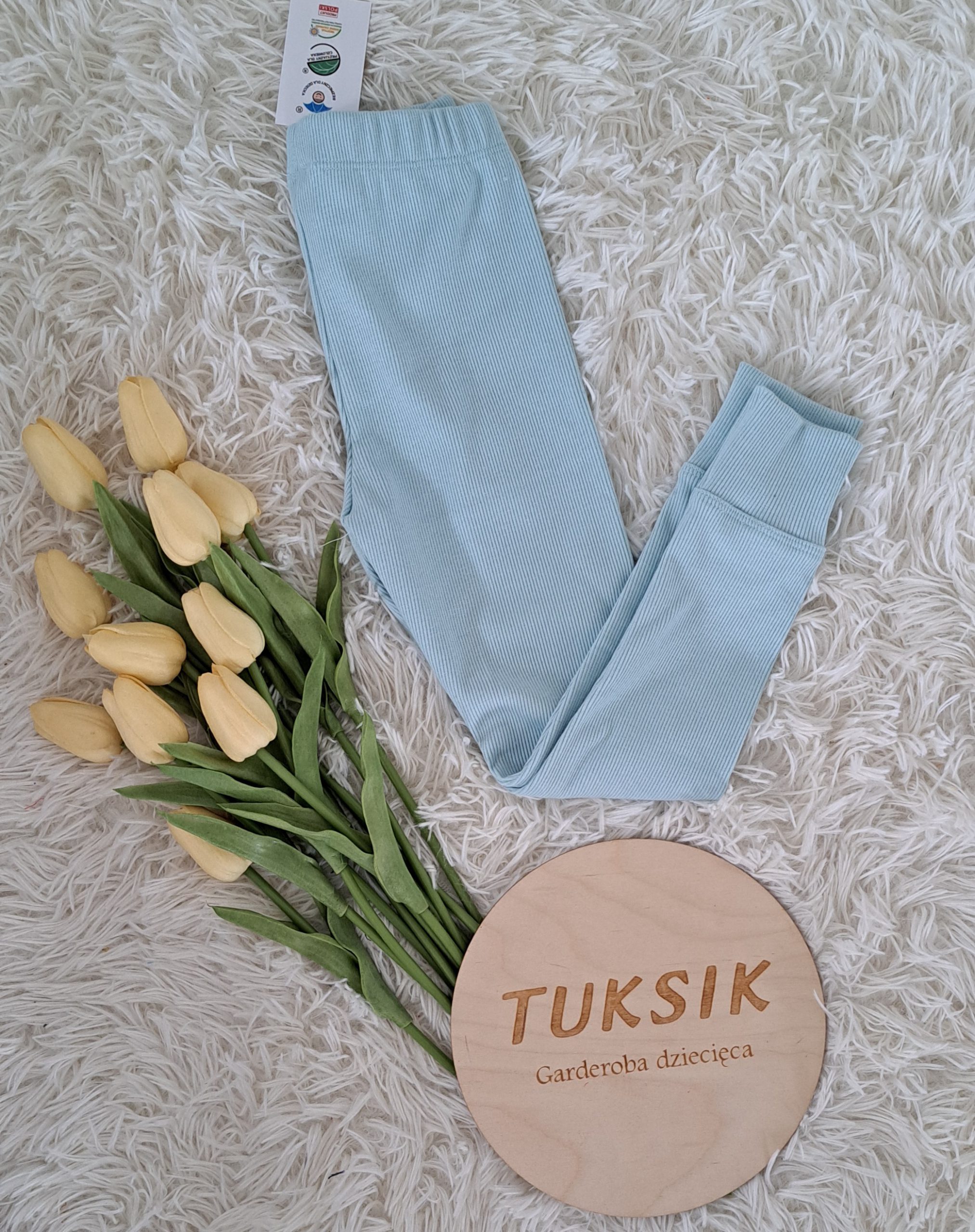Leginsy z bawełny prążkowanej w kolorze BŁĘKIT. Polski producent, jakość premium. Bardzo wygodne, dopasowują się do sylwetki. Idealne do przedszkola i szkoły.